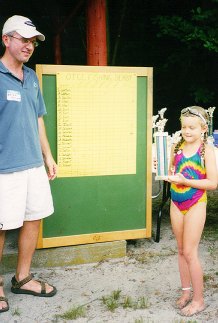 An afternoon thundershower held off long enough for about 70 people to enjoy the Annual Picnic on Sunday, July 30, 2000. The highlight of the picnic was the awarding of trophies to the entrants of the Third Annual Youth Fishing Tourney. Click here for a photo of all the trophy winners. The top awards were: