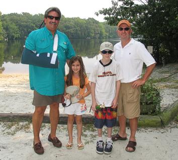 The fishing tournament is normally held on the morning of the annual picnic. This year, stormy weather on July 22 forced postponement of the tournament even though the skies cleared sufficiently later in the day to allow the picnic itself to proceed.